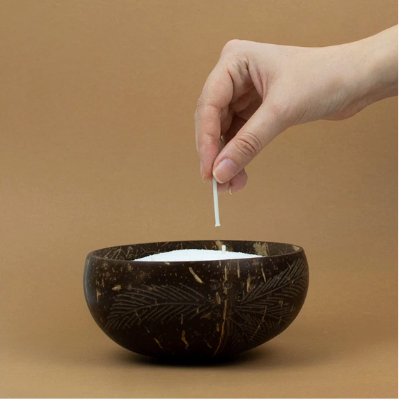 Coloca la mecha en la vela de manera que se sostenga pero que quede una pequeña parte por fuera
