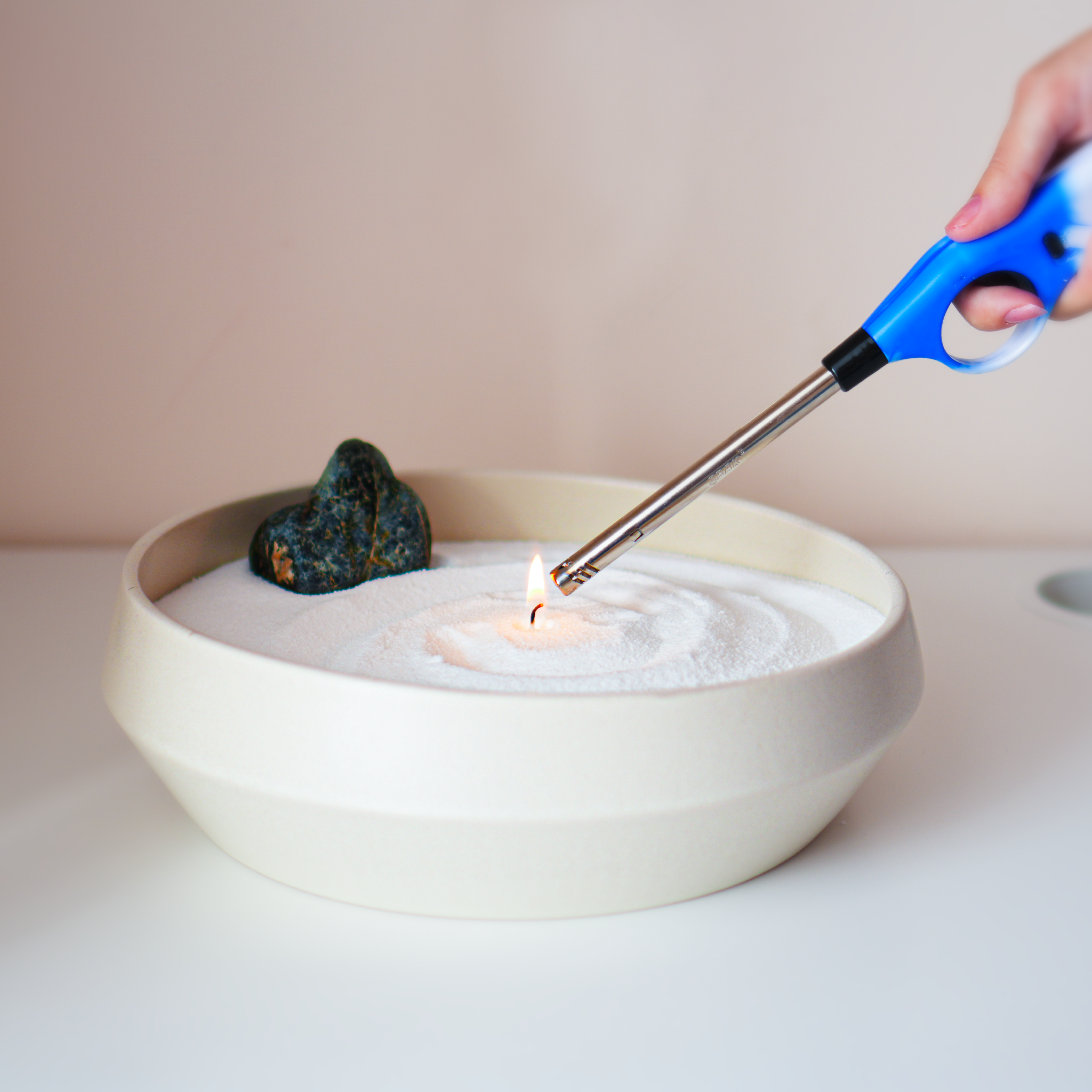 Para asegurar una combustión adecuada, inserta la mecha de manera que solo sobresalga unos 0,5 cm por encima de la arena. Si queda demasiado expuesta, puede quemarse de forma irregular o apagarse antes de tiempo.