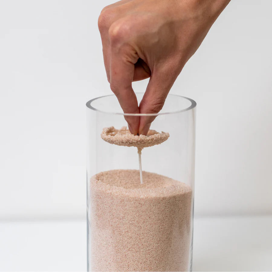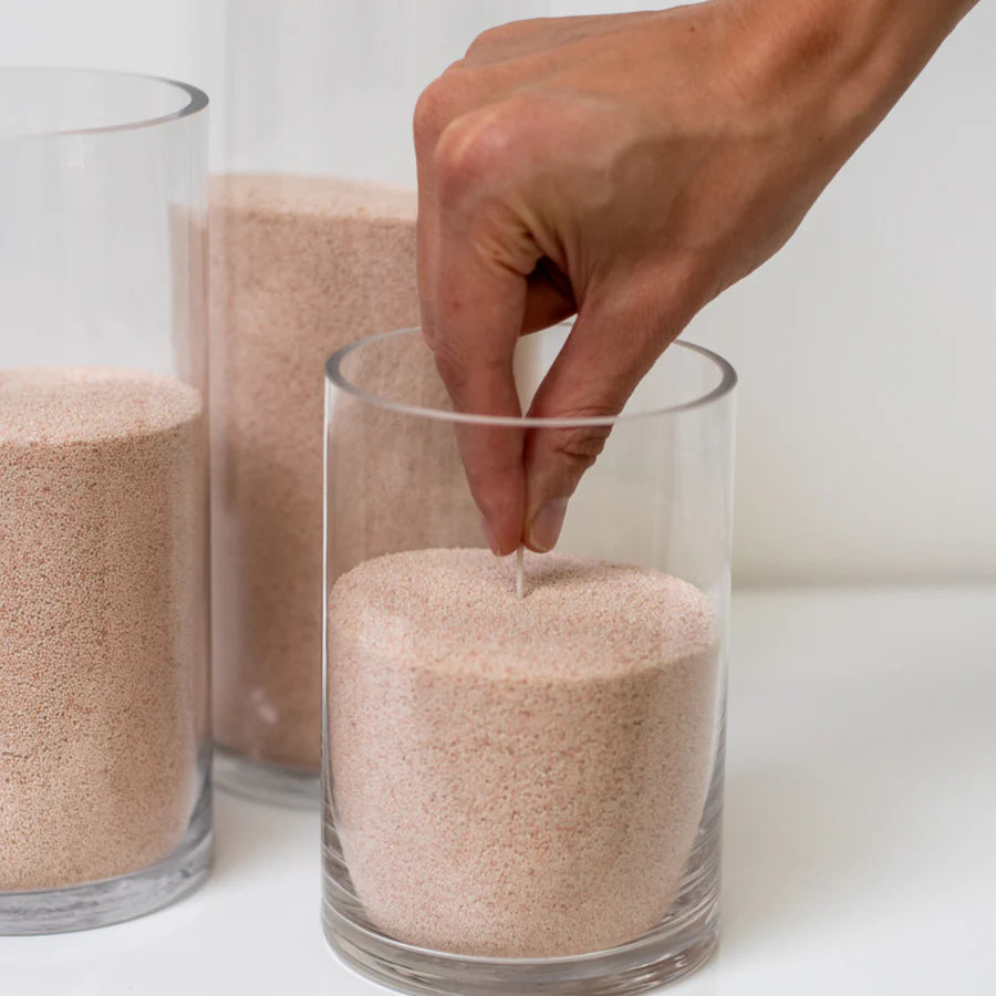 - PERSONALIZA tus velas llenando recipientes de cualquier tamaño y forma; incluso puedes utilizar nuestras velas de arena blanca para hacer velas flotantes en agua.